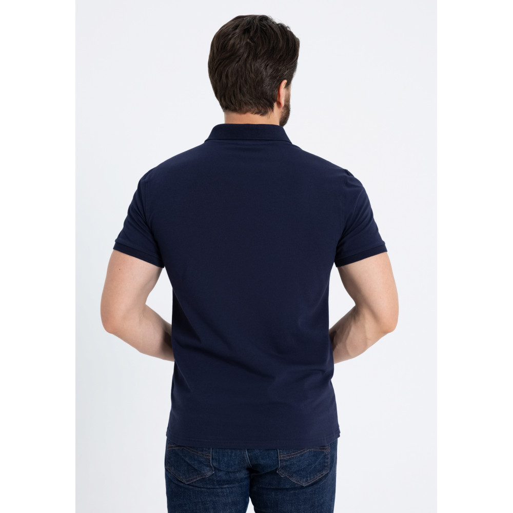 Размер мужской рубашки поло: XL/52. Параметры модели: рост 190 см.; обхват груди 108 см.; обхват талии 87 см.; обхват бедер 104 см.