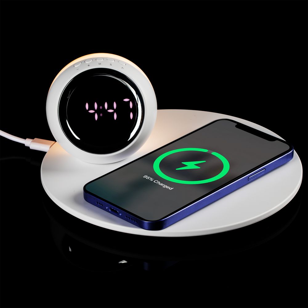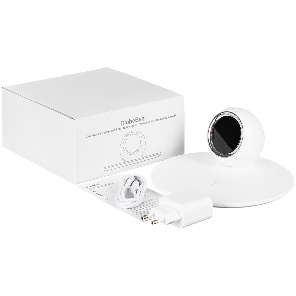 Станция беспроводной зарядки с часами и подсветкой GlobeBee, белая