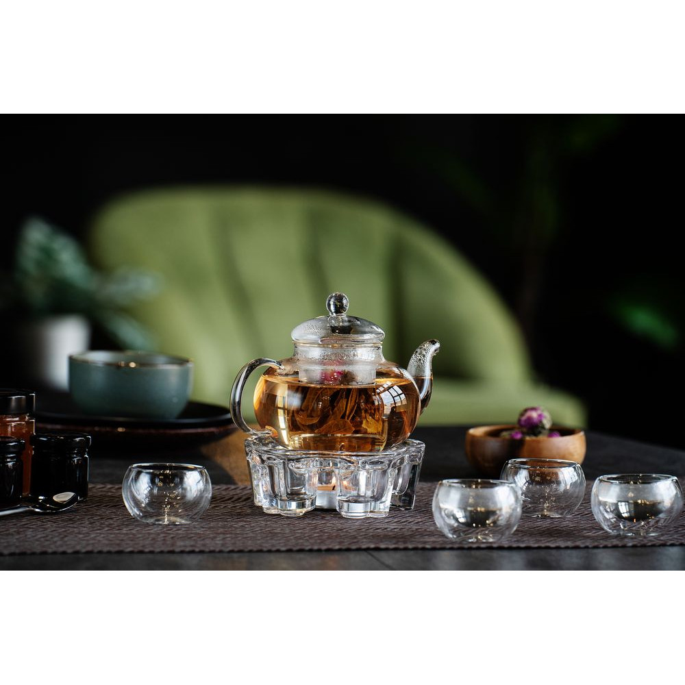 Создать атмосферу уюта и спокойствия дома или в офисе поможет чайный набор Teo. Изготовленный из боросиликатного стекла чайник позволит насладиться процессом раскрытия чайного листа во время заваривания и насыщенным цветом готового напитка. В подставке для подогрева предусмотрено место для чайной свечи, так что чай будет долго оставаться теплым.