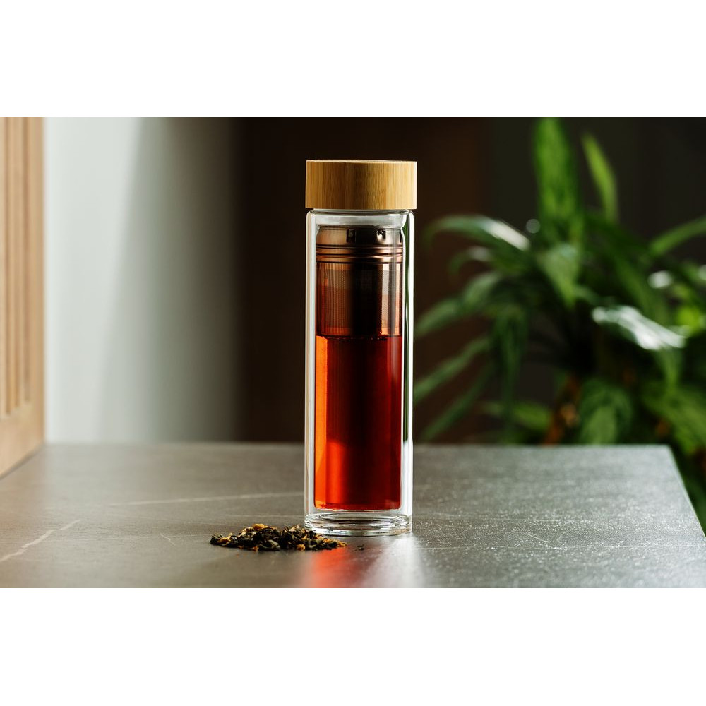 Удобная бутылка среднего объема для заваривания чая, кофе или трав горячим или холодным способом. Двойные стенки не дадут обжечься, если содержимое бутылки окажется слишком горячим, а также помогут дольше сохранить температуру напитка.