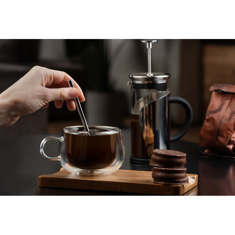 Чашка с двойными стенками Small Ball выполнена из боросиликатного стекла и предназначена для подачи холодных и горячих напитков. Благодаря двойным стенкам чашка отлично сохраняет тепло и не обжигает руки.Емкость 210 мл.
