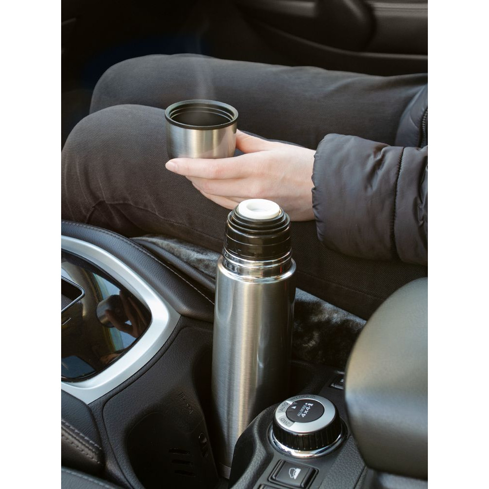 Двухслойная вакуумная конструкция из нержавеющей стали с завинчивающейся пробкой с клапаном.