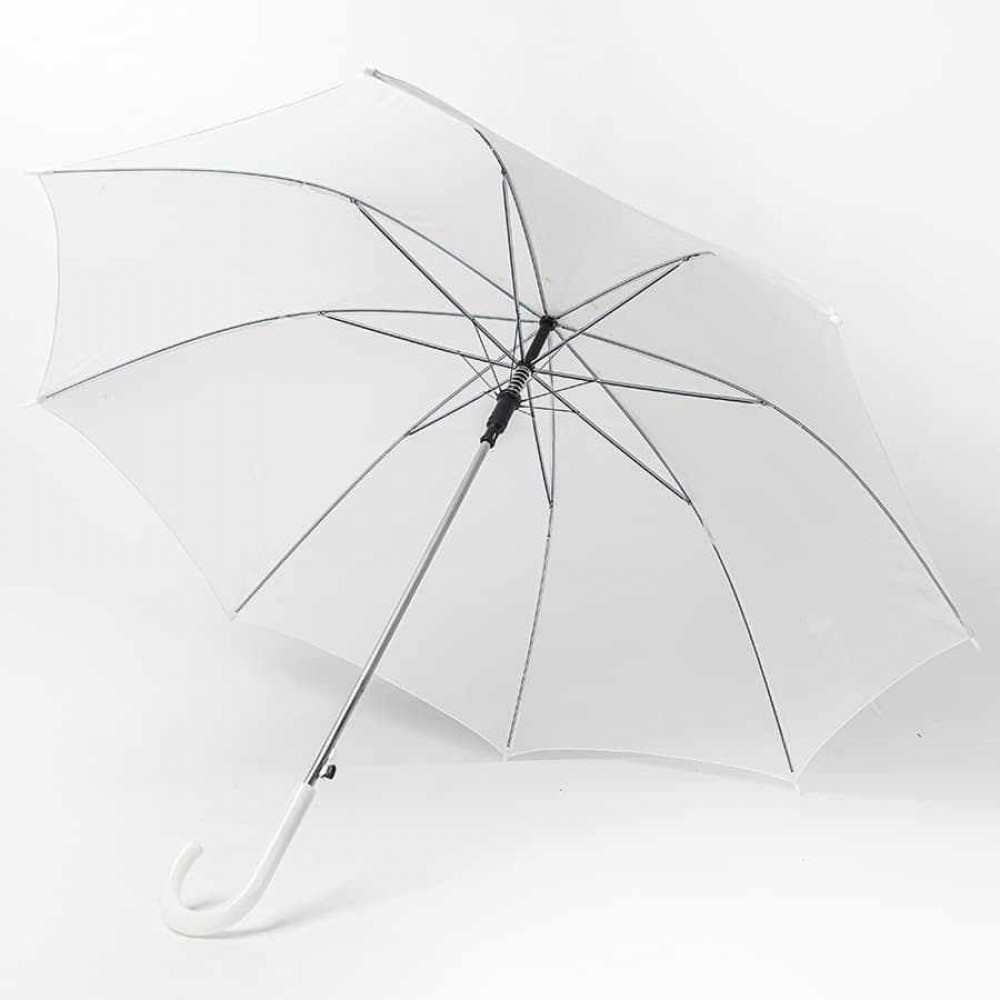 Параметры: Зонт-трость с пластиковой ручкой, полуавтомат; белый; D=103 см; нейлон
